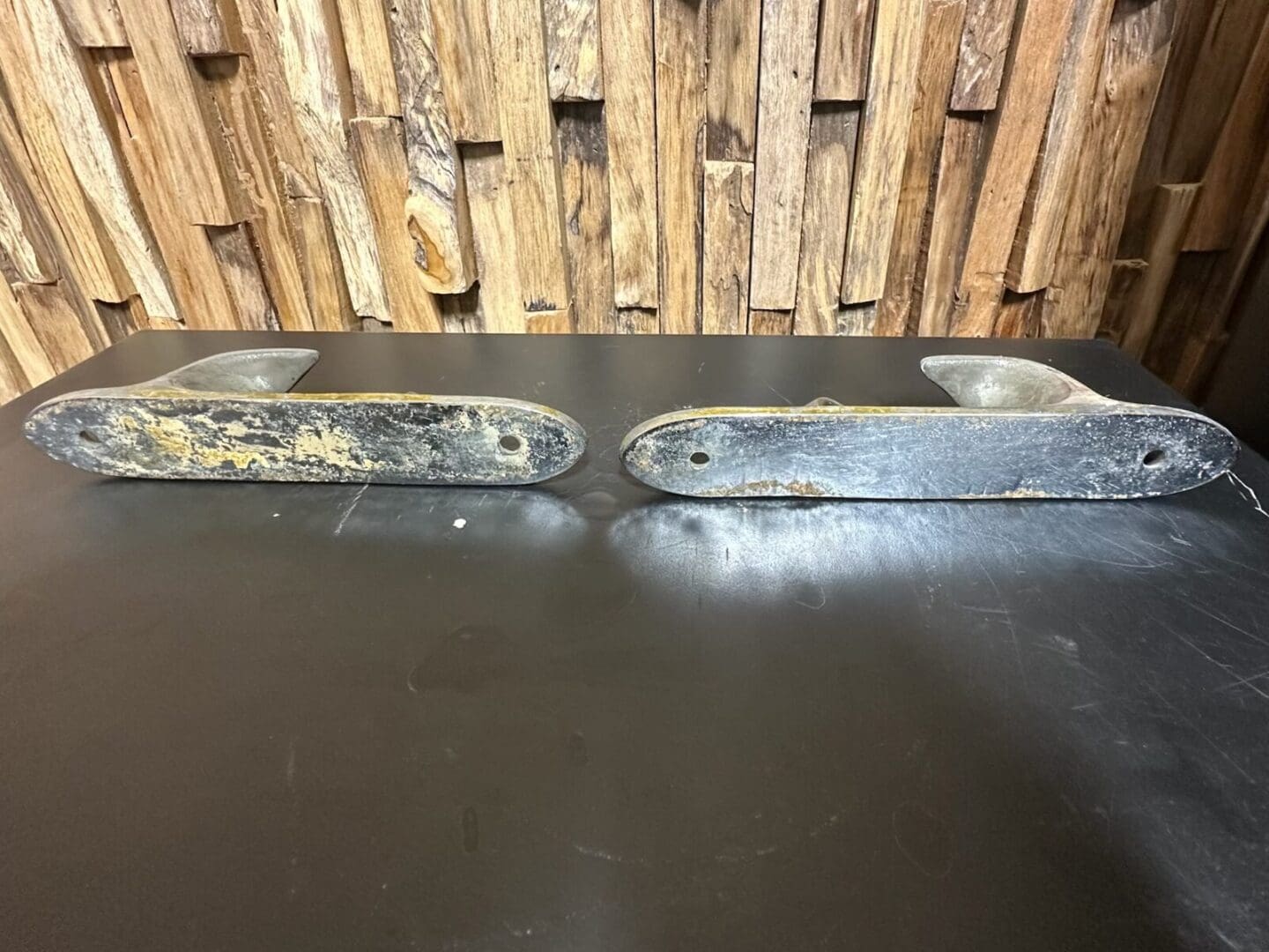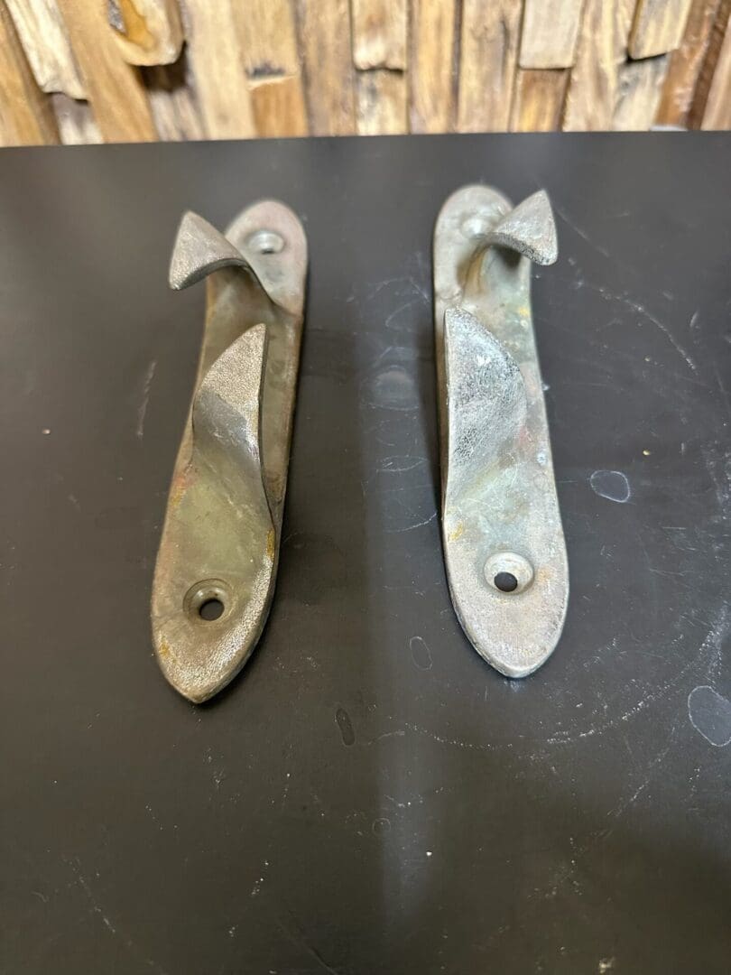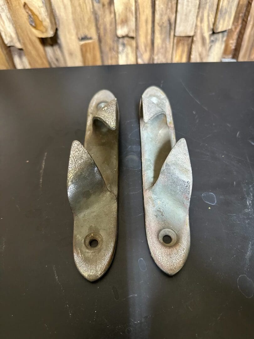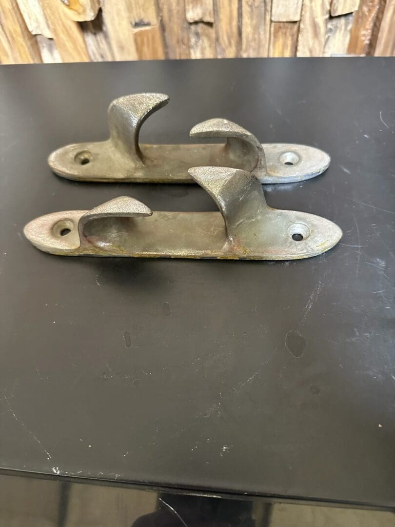 As found, a pair of vintage skene angled bow chocks 40’-50’s era, have definitely been used / mounted at some point in time.